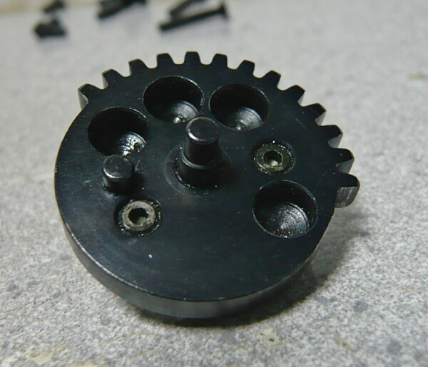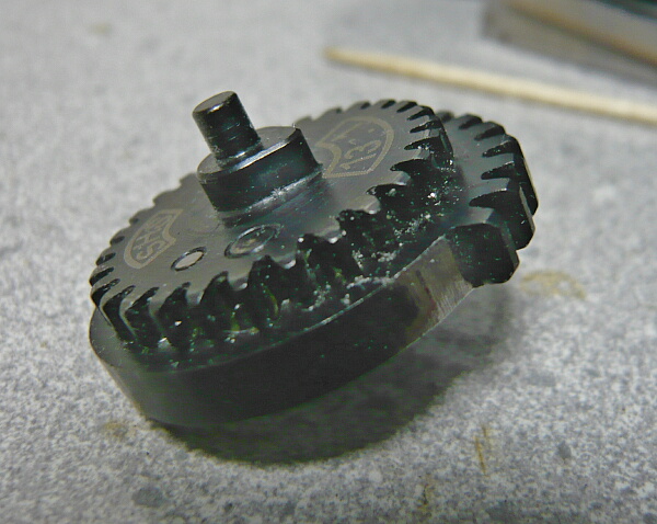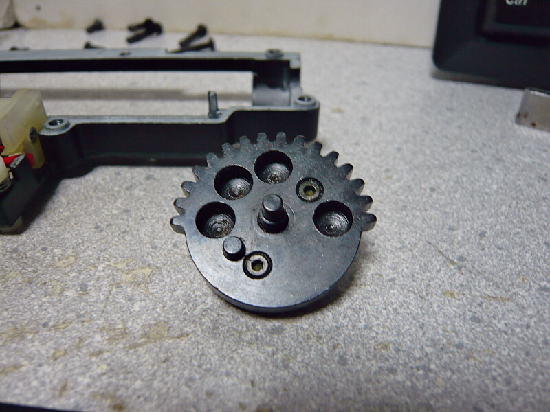 セクターギヤは買ったまま。上画像で回転方向は反時計回り、カットするのは定番な引き側(左側)1枚、解放側(右側)2枚にしましょうか。CYMAのAK47タクティカルにそれをやったところ結果が良かったので今回もこれでいってみましょう。