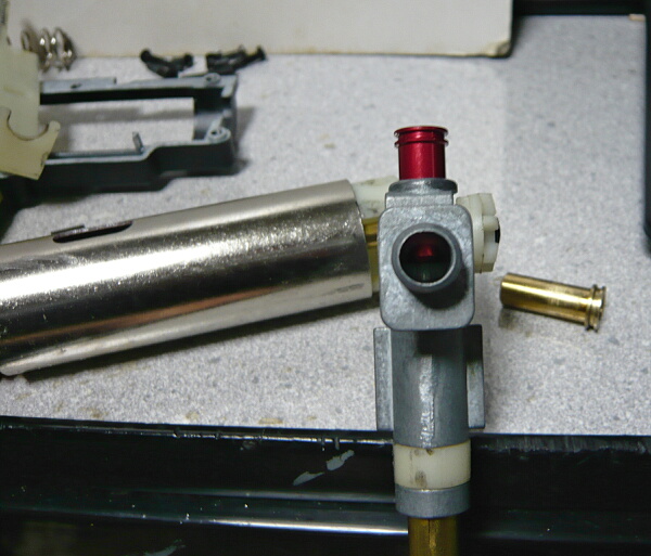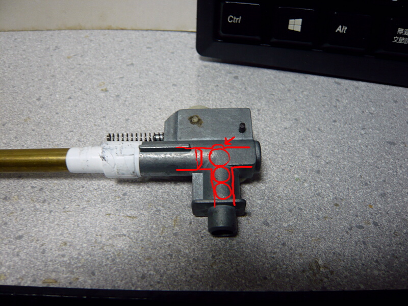 2発給弾はググってみるとチャンバーの給弾口から入った弾が天井で滑って2発入ってしまうから、天井部分に窪みを作ってやるとよい、という回答。上画像の赤で描いた内部図解のようにしてやると良いそうです。