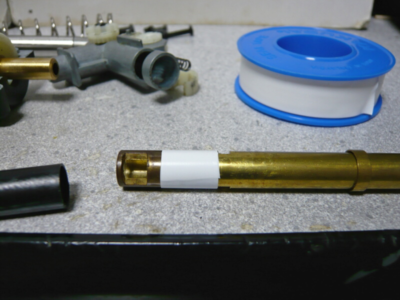 インナーバレル固定パーツとインナーバレルとの隙間を覆うようにシールテープを薄めに巻きます。太く巻いてしまうとアウターバレルの後ろに刺さらなくなるので薄めに。