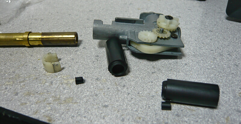 S&T BABY M4に入れていたSHSの13:1ギヤのセクターカットをして再び組み上げたところ初速が大幅減・・・元々不安定で低い時があったのですが、完全に低い状態で固定されてしまいました。