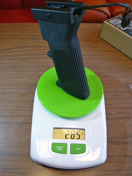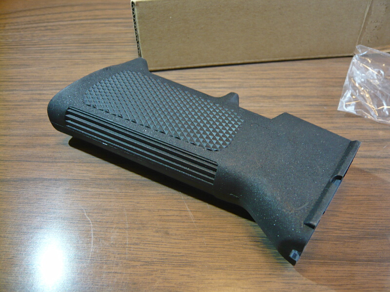 表面仕上げがやけにザラザラしていてM16A2タイプのグリップとはちょっとイメージが違う印象ですが、今時のポリマーグリップらしい風合いといえば、そんな感じ?