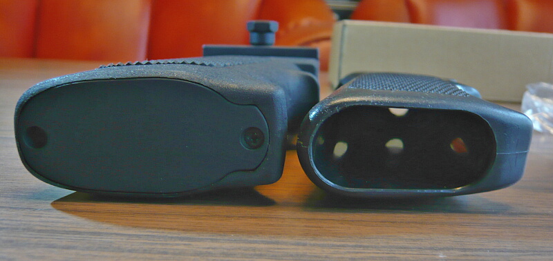 電動用よりは幅が狭いので握り心地は左右に多少細い印象。フォアグリップは左で握るのであまり「慣れた握り心地と違う」的な違和感は無いのですが、敢えて挙げるなら人差し指と中指の間に隔てるものが無いのがちょっと気になるかな?この形だとやっぱりトリガーガードとトリガーが無いのが左手でも気になる感はあります。慣れましょう。