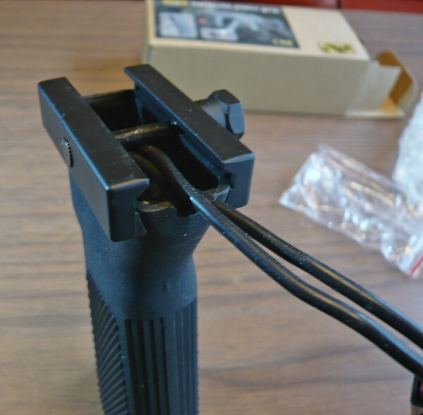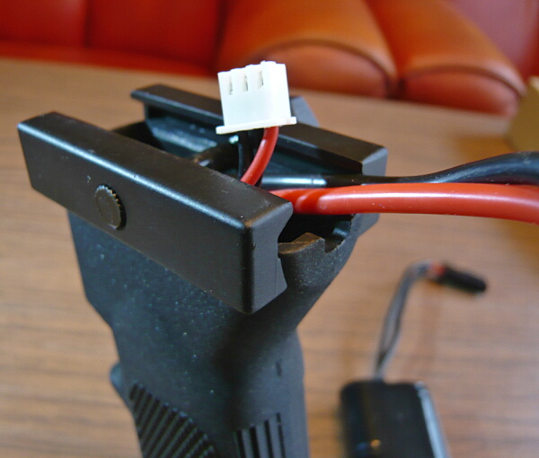グリップ上の後ろ側に切り欠きがあり、ここから配線を外に出すようになっています。