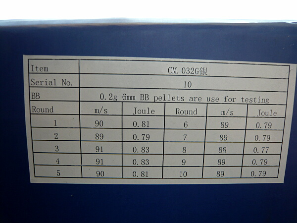 弾は0.2gで88m/sほど、秒10発くらい。数字的にはいつものCYMAって感じ。トリガーは軽く引き心地は良いし、変な音もしていないのでサイクル遅いなりにこれは中々良い感触。