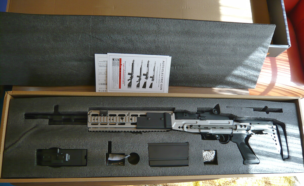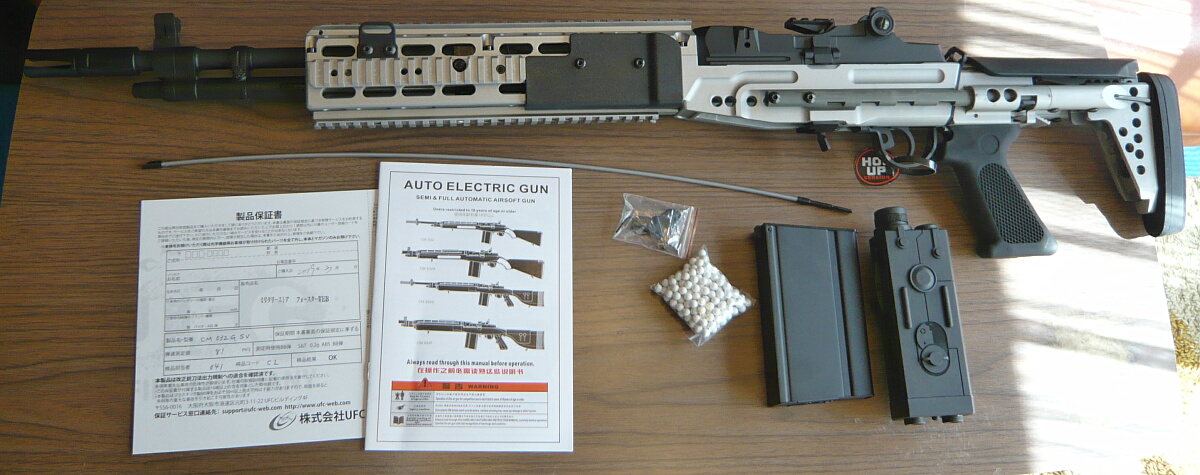しばらく欲しい銃が無く、既に持っている銃をいじるにしてもネタが無いし、何より寒いので動きたくなかった…しかし冬は終わりを告げ暖かくなり花粉という邪魔こそあれようやく行動意欲が出てくると、フツフツと欲しいものも出て来ます。M14EBRは以前からカッコイイなぁ…とは思っていたもののバカ高いものしか無くて高嶺の花でした。CYMAが数年前にEBRを出したのですが、それはM4ストックが付く「Mod.1」でした。カッコイイと思っていたのはEBRの初期型でメカメカしいスライドストックが付く「Mod.0」の方。Mod.1は改良進化型ではあるのですが、格好的には何か…こう…コレジャナイんだよなぁ…と思ってスルーしていました。しかし数か月ほど前にふとショップのページを見るといつの間にやら発売されてるじゃないですかMod.0!でも黒い方しか残っておらず、本命の銀色の方は売り切れていました。まあ、今は何か動きたくないし…そのうちに…と待っていたところようやく時が来ました。