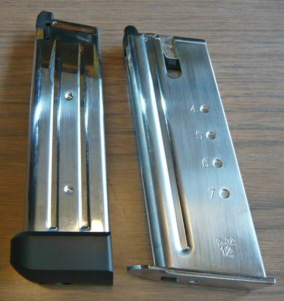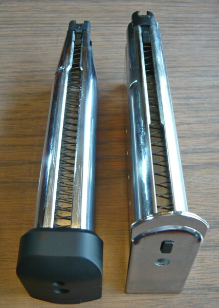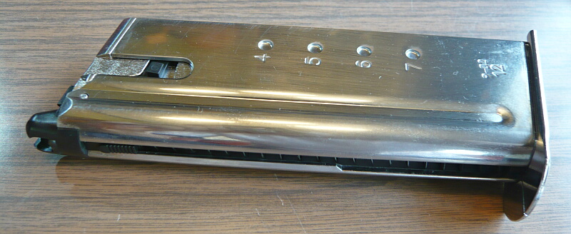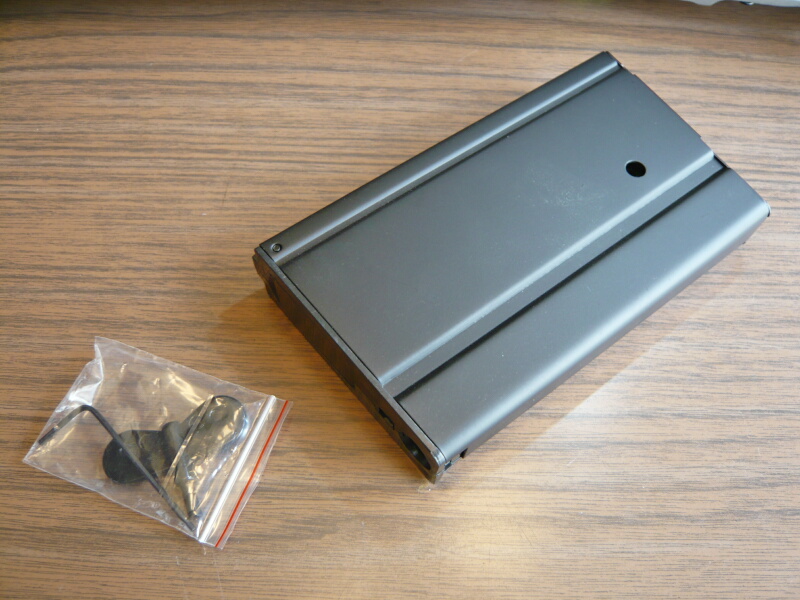 付属の多弾数マガジンは左側面に穴があり、ここへ付属のレンチを挿してゼンマイを巻く事ができます。