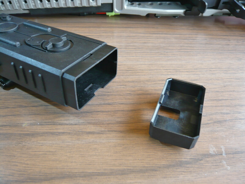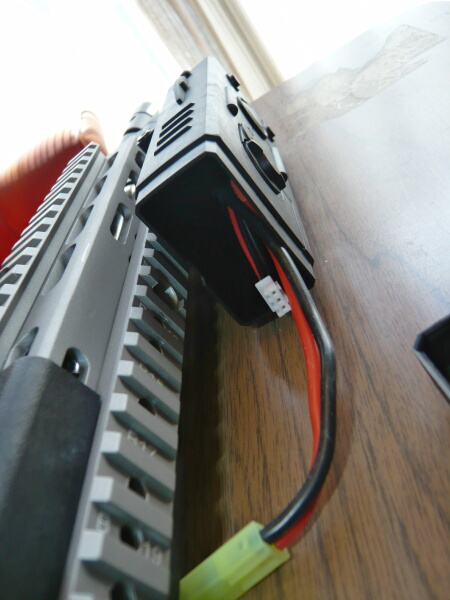 上は開いていて、バッテリーの出し入れは上から行います。なのでこのフォアグリップを銃に付けたままではバッテリ―の出し入れは出来ず、その都度フォアグリップを銃から外す必要があります。