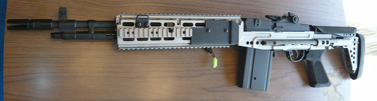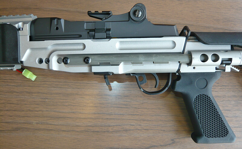 普通のM14やEBR Mod.1ではストック内にバッテリーを収めていましたがMod.0では収める場所が銃本体に無いので外付けのバッテリーボックスを使用する事になります。