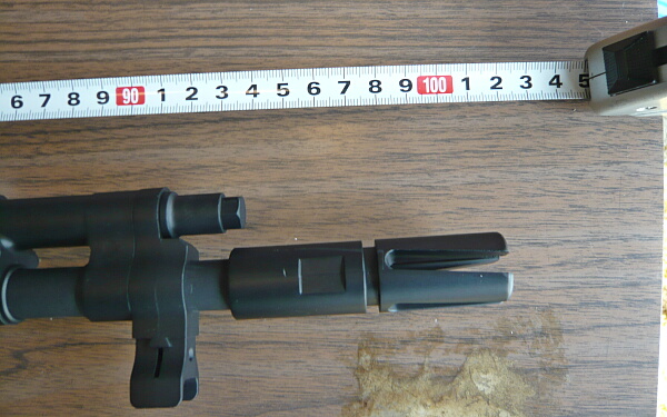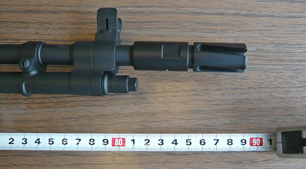 各部をチェック。フラッシュハイダーは捻じれるようなスリットの「ボルテックスハイダー」。材質は鉄では無いですが(亜鉛合金?)小突くとキンキンといい音がします。インナーバレル先端はスリットの付け根から1cmほどのところまで来ています。