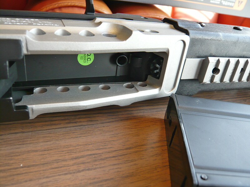 マグウェル部。マガジンが大きいのでまるでダブルカ―ラムのマガジンが入りそうな大きな開口部となっています。