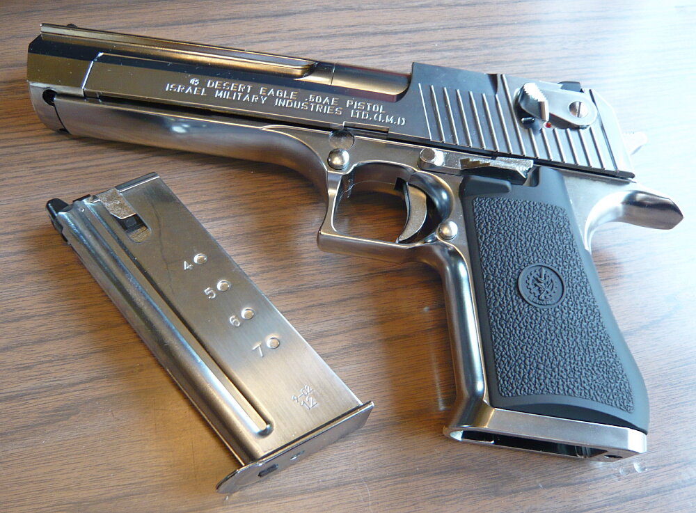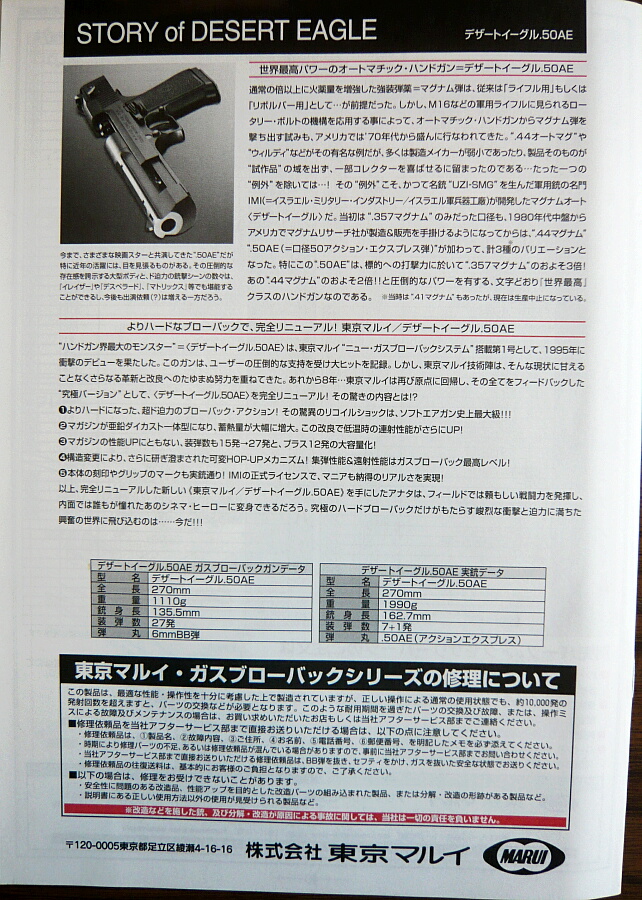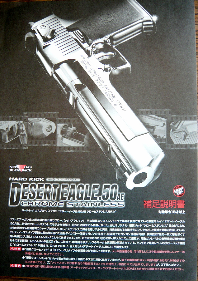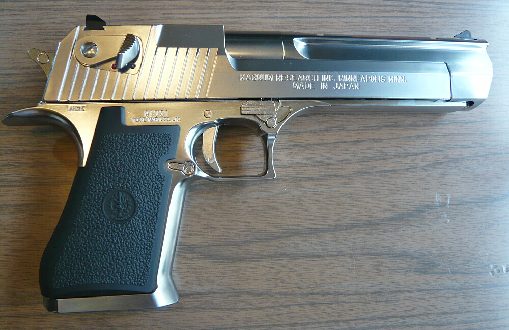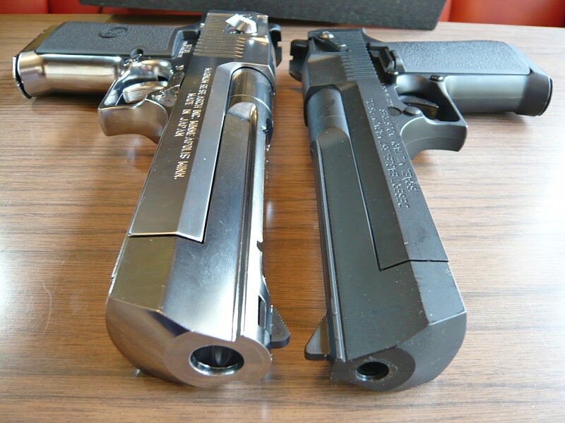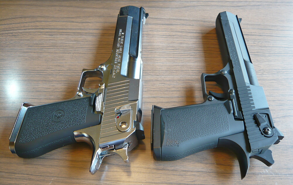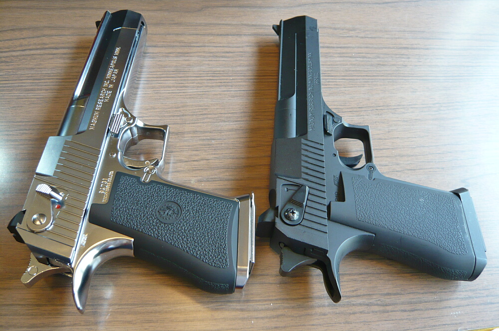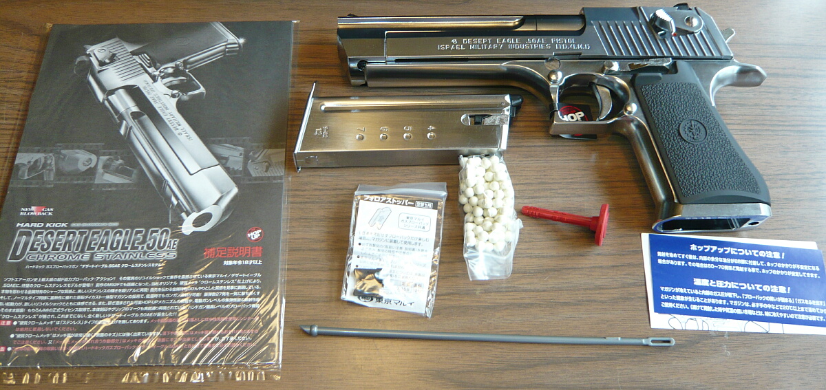 マルイのデザートイーグルは古くはエアコキ1900円シリーズに.44マグナムのモデルがあり、そこからかなり後になって.50AEモデルのガスブローバックが発売されました。しかしそれも2003年の事であり、少々今更感はあるのですが手を出してみました。黒い方のが安くてラフな使用でキズが入ったりしても気にならないのですが、銀色の方しか無かった…