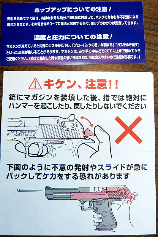 説明書は冊子になっています。他とは色々勝手の違う銃なのでよく読んでおきます。