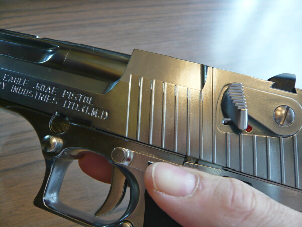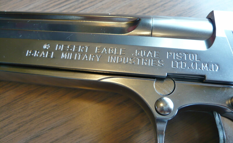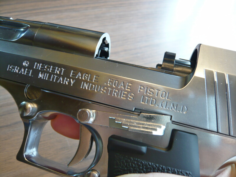 スライド左面にはデザートイーグル.50AEやイスラエルIMIの刻印などがあります。