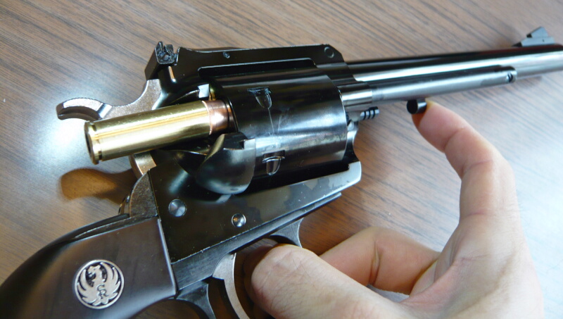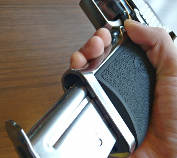 ローディングゲートを閉じたら準備完了。あとはハンマーを起こしてトリガーを引けば発射となります。