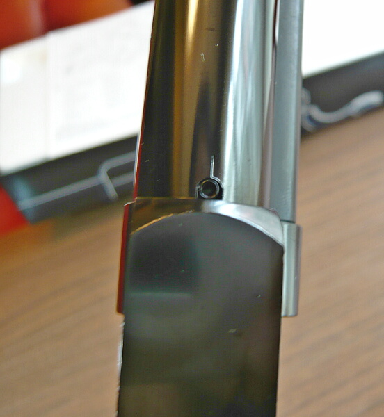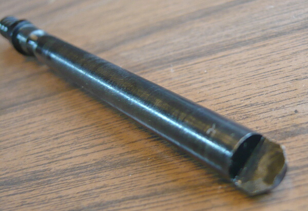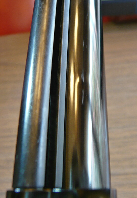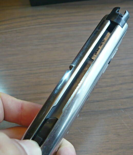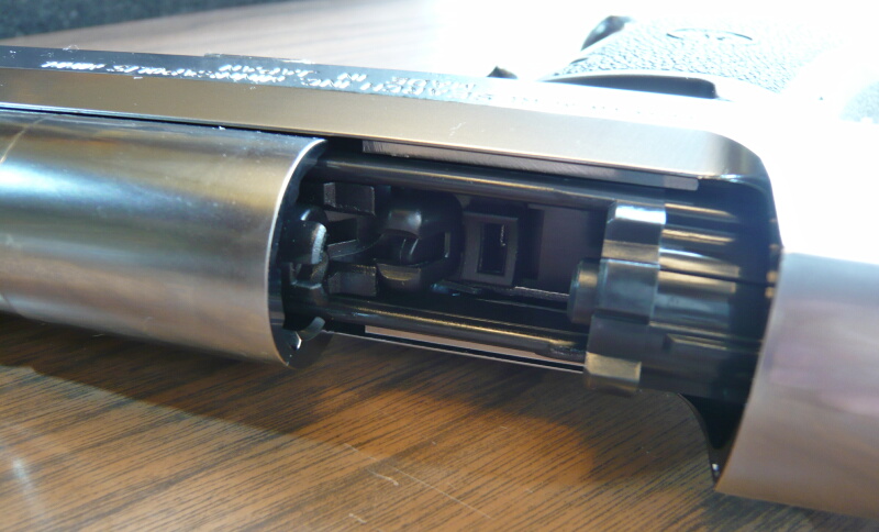 D断面の丸い面をアウターバレルの沿わせて差し込むとバレルと干渉して抜けなくなってしまい、力づくで抜くとバレルに傷が入ります…