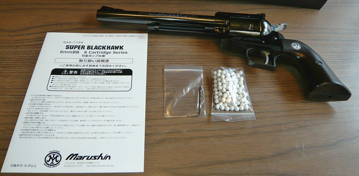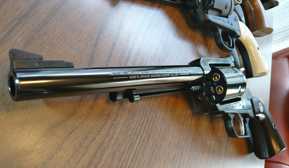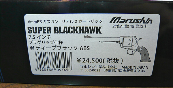 マルシンのガスリボルバー、スーパーブラックホーク7.5インチプラグリップ仕様WディープブラックABSです。