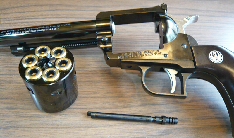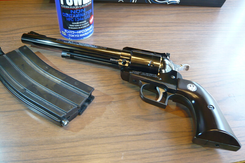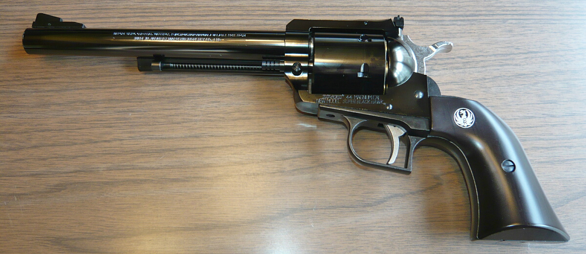 第二次大戦後の1950年代に新興メーカーであったスターム・ルガーにより発売された、コルトSAAを元にして.357マグナム弾などの強力な弾薬を発射できるように強化された「ルガー・ブラックホーク」という銃。これを更に強化して.44マグナムに対応したものが「スーパーブラックホーク」です。そして更に更に自動セーフティ機構を内蔵し安全性を高め1973年に発売された近代化モデルが今回のものの元である「ニューモデル・スーパーブラックホーク」となります。