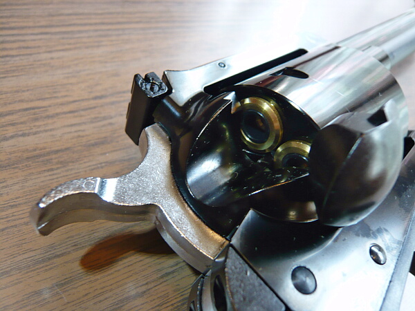 ローディングゲートを開き、シリンダーにカートを込めます。ロマンあふれる時間です。
