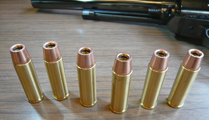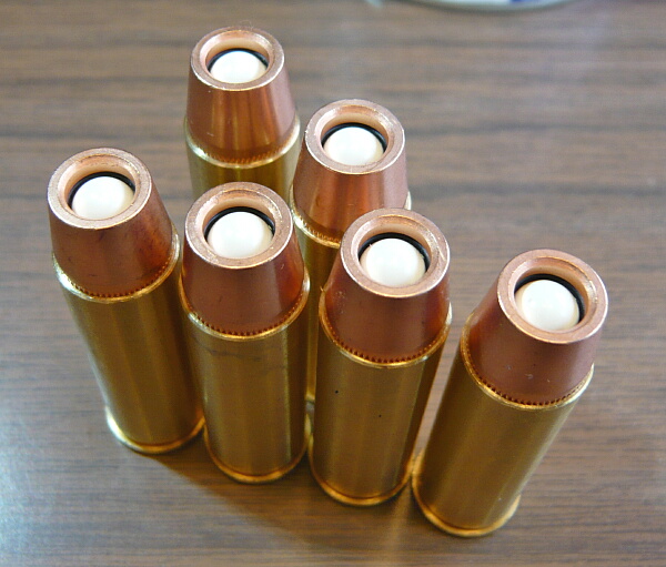 Xカートと呼ばれるカートは弾頭部がカッパー(赤銅色)、薬莢部が真鍮色になっておりリアルで迫力があります。同じマルシンのスーパーレッドホークのカートと全く同じもの。
