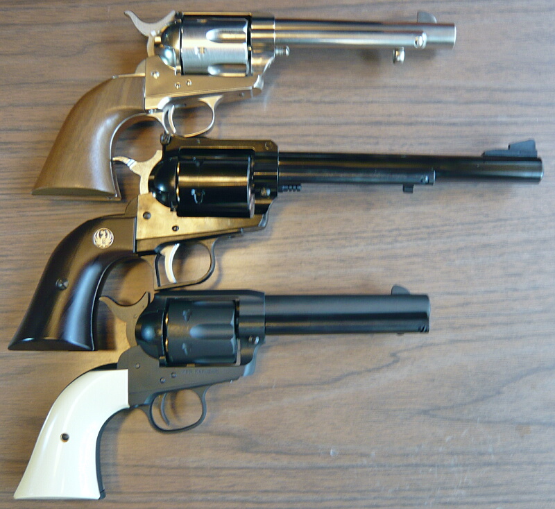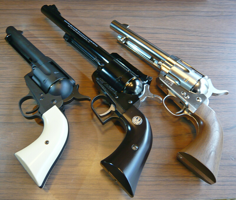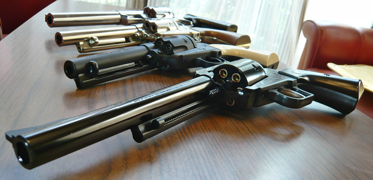 左からマルシンSAA、マルシンスーパーブラックホーク、タナカSAR「レンジャー」。