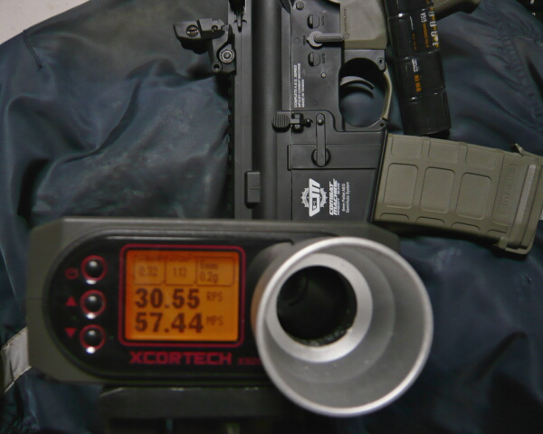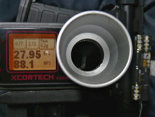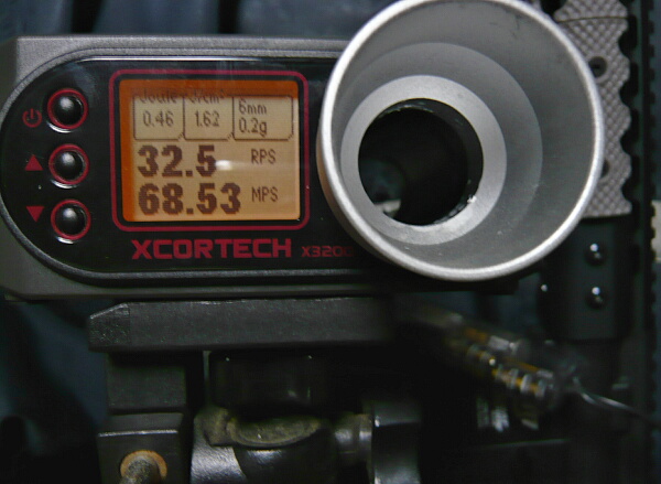 9.6Vで秒32.5発が出ました。ただ初速は64~70m/sとあまり上がりませんでした。スプリングは弱すぎてもサイクルが出ないという事なのでしょうか。