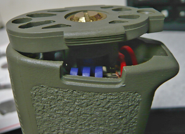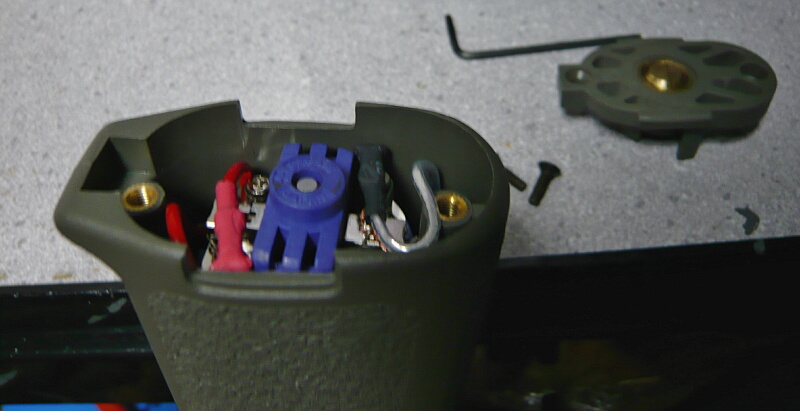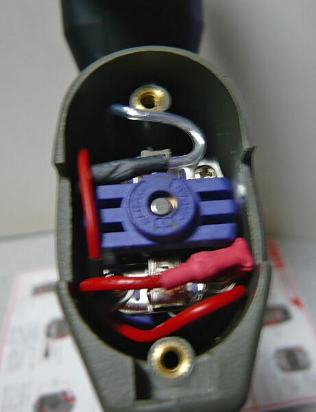 グリップに収めます。SBDはモーター側面の平面部分に沿わせるとグリップ内部と挟まるので曲面側に沿わせた方がスマートでしょう。