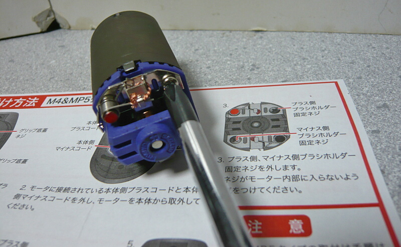 グリップ底部のパネルを外し、モーターを取り出します。