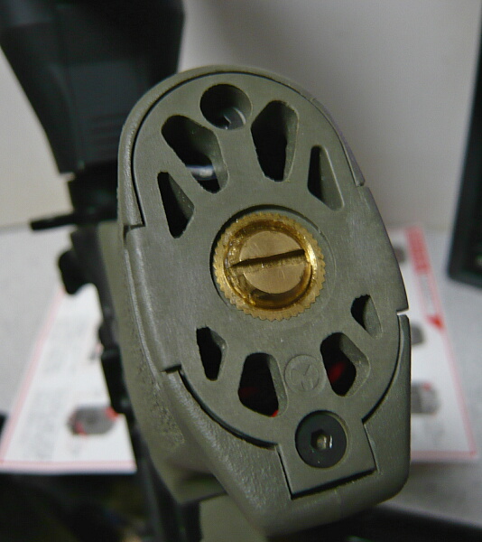 反対側は正ネジになっています。ファイアーピッグが炎を吐いている向きは正ネジの銃に使用した場合の方が見栄えが良いでしょうか。