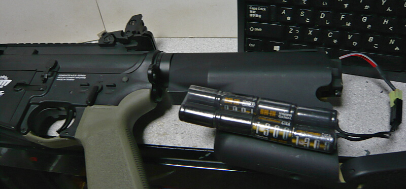 このバッテリーだとストックチューブに完全に収める事ができます。
