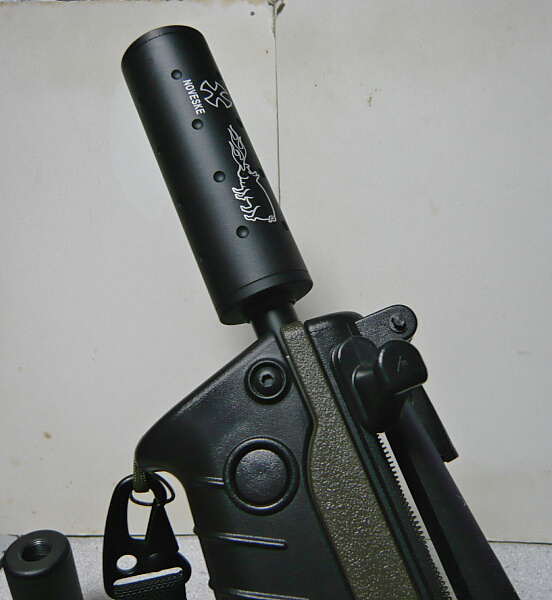 両側はねじ込まれていて簡単に外せ、中身はスプリングとその外周にスポンジが詰められています。ちゃんと減音効果がありそうです。サプレッサー両端は軽く回ってしまうのでネジ止め剤などで回り止めをしておいた方が良いかもしれません。