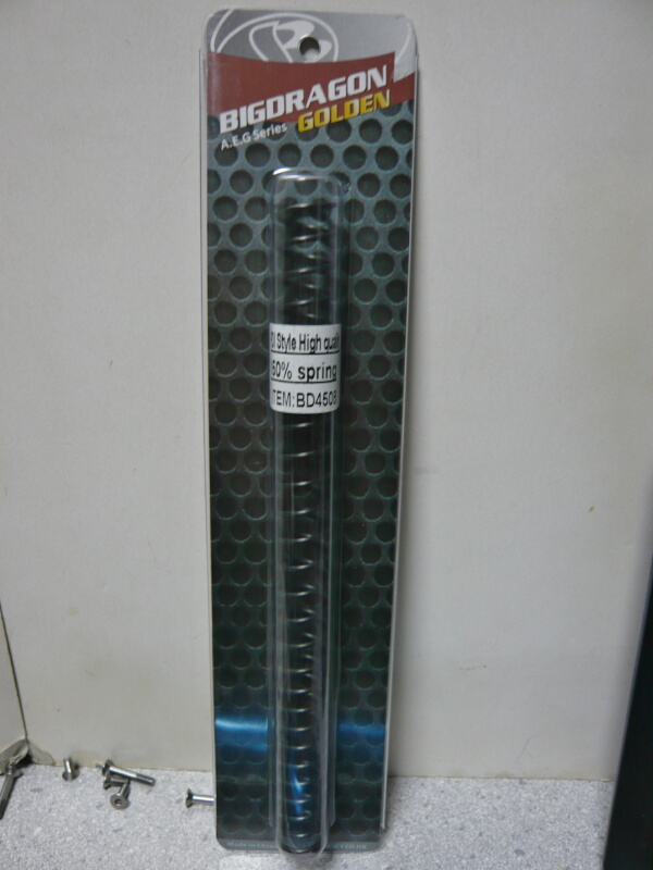 スプリングを調達してきたのでDSGを入れたG&G CM16の初速を復活させます。お座敷なので初速60m/s台でも十分なのですが、やっぱり80台は出てないと本当にただ入れただけだし、他の人の参考にもならんし・・・