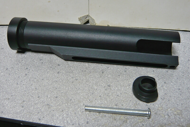 ならもう多少バッテリ―の出し入れの利便を損なってでも普通のM4ストックチューブにしてしまいましょうか。用意したのは以前G&G CM16に装着したものと同じエレメントのスリット入りストックチューブ。