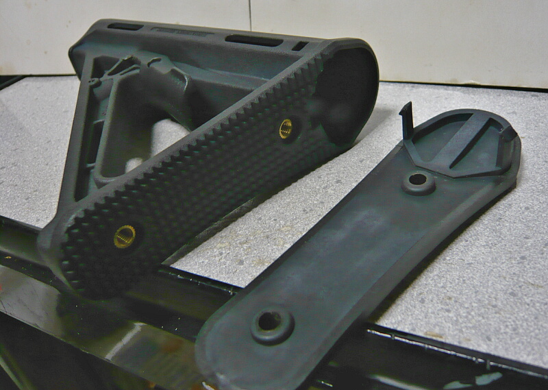 ただマグプルのストックはみんなそうなのですが、バットプレートが爪で留まってて更にネジで締めてあるためバットプレートを外すのが面倒臭いのです。ストック自体をストックチューブから抜くのにも専用の工具が必要です。今回はその辺はあえて目をつぶる事にします。