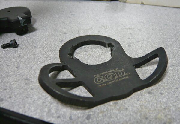 やはり固定で横に突き出してるやつのがいいな(欲を言えば、G&G CM16に標準で付いてる左側に1か所だけスイベル穴があるやつが一番良い・・・)というわけでマルイのM4に付けてるCQDスリングスイベルと交換しましょうか。でもこれ、確か削って無理やり突っ込んだ記憶。