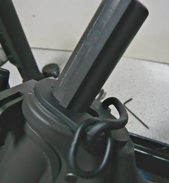 このストックはストックチューブ付け根に挟むタイプのスイベルが使えないという問題があります。