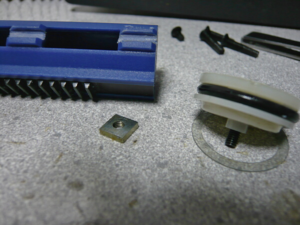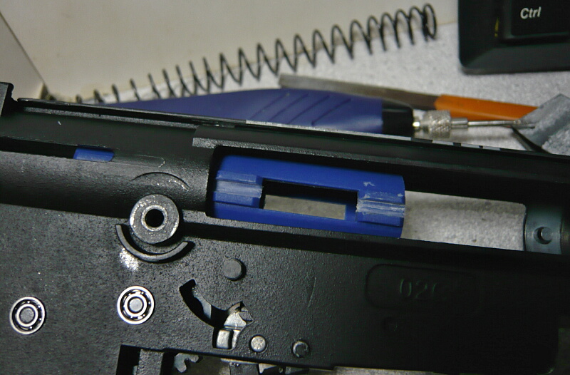 と、理屈ではそうなのですがこの銃では組み合わせ的に初速もサイクルも低く、まだおかしい部分があります。というか気づいたのですが、ピストンがスムーズに動いていません。