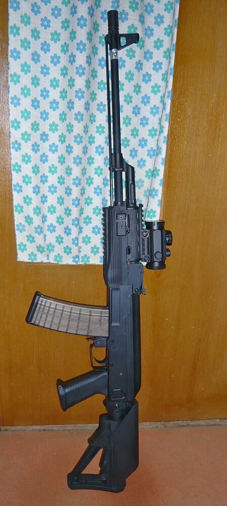 組んだりバラしたりの邪魔なのでトップレイルを外してみましたがこの方がAKらしいシルエットになりますね。アイレリーフの近いスコープを使わない限りはハンドガード上のレイルで足りるという事なのでしょう。