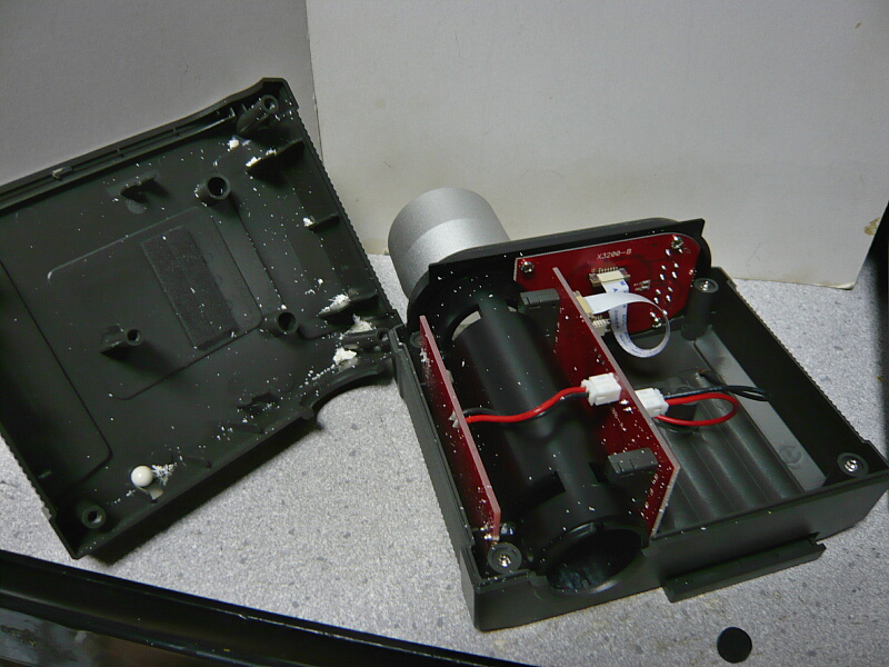 四隅と中央の計5本のネジを抜くと筐体上半分が外れました。中にはBB弾やその破片でコナコナになっています。