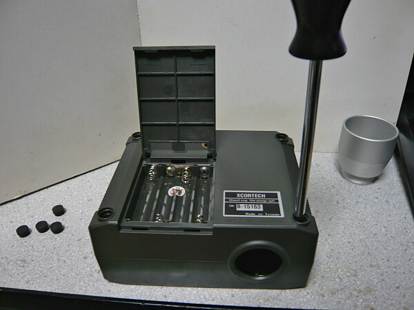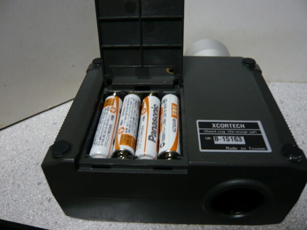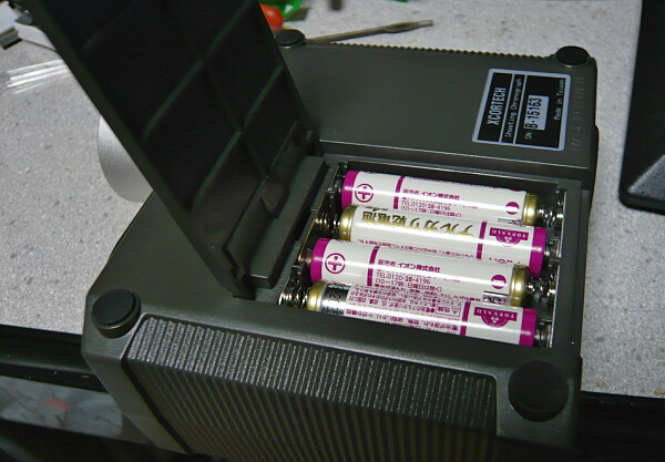 単四電池4本を入れます。電池が減っていると「TOUT」が出やすいとも聞くので、できれば画像のようにニッケル水素充電池(1.2Vのため「減った電池」と機械側に認識されやすい)ではなくアルカリ乾電池(1.5V)を使用した方が良いのでしょう。