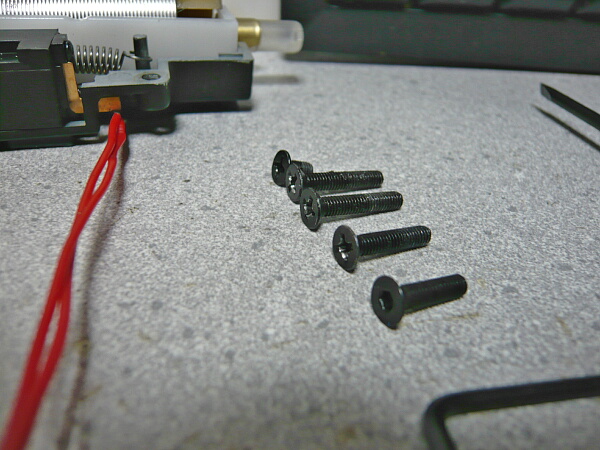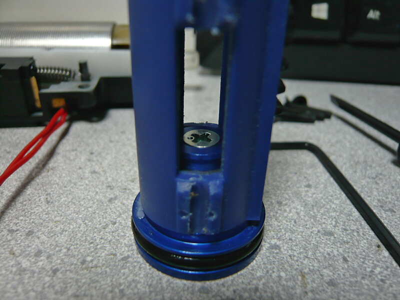 ところでこのピストンヘッドはピストン後方から六角ネジで締めるものなのでピストン後方からレンチを突っ込んで締めようにも届かなくなるので作業性が非常に悪いです。ネジをプラスネジに換えてしまえれば作業性の点は解決するのですが・・・