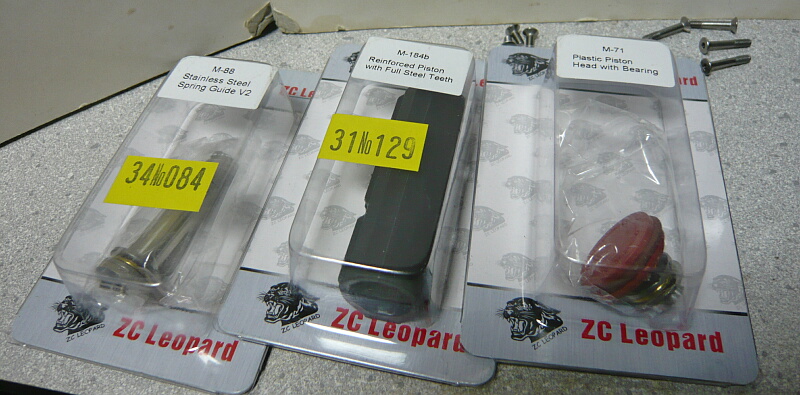 交換するパーツはまずスプリングガイド、ピストン、ピストンヘッド。この3つはZCレオパルドのもの。