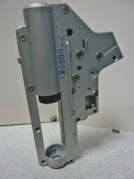 G&Gのメカボックスはネジが左面にあり、これを抜いてから右面を上にして作業をする事になります。