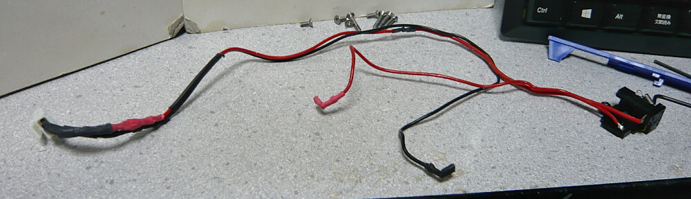 熱収縮チューブを被せて出来上がり。スイッチ⇔モーターの赤配線は面倒臭かったので元のをそのまま使います・・・