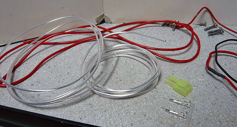 配線は太いが柔軟性のある赤と黒のコードと、1.25sqと0.75sqのシルバーコートシリコンケーブルを買ってあります。性能でいえば全部シリコンケーブルにするのが良さそうなもののこれは針金のように柔軟性が無くて固いので、細い0.75sqのシリコンケーブルを黒線と置き換え、赤線を柔軟性のある赤コードに置き換えます。