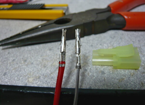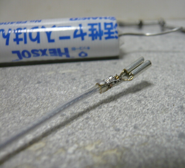 モーターコネクタは手に入れられなかったので外す配線からもいで再利用。頑固にカシメられててほどけなかったのでぶっちぎってやりましたが何とか使えるでしょう。
