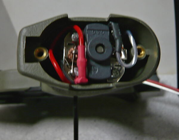 メカボックスにスイッチと配線を配置します。作業中にズレてうっとおしい場合はメカボックスに配線を軽く接着してしまうのも良いでしょう。