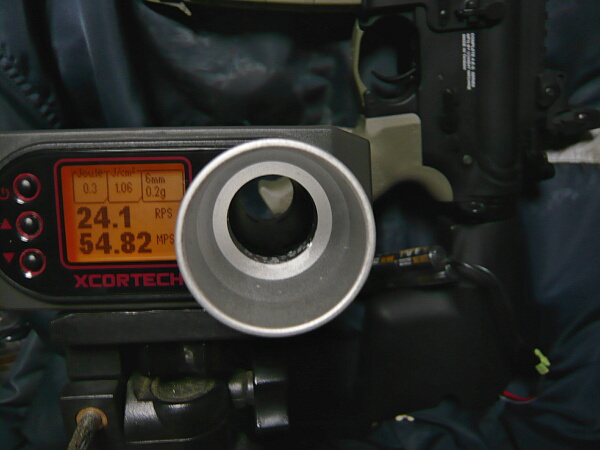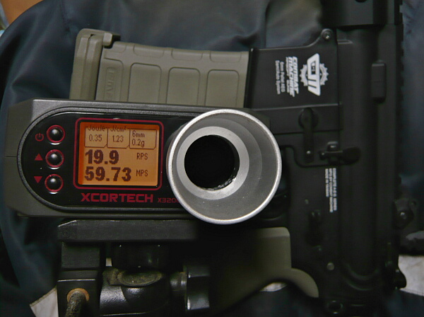 初速とサイクルをチェック。ピストンの前後動が渋くなってたのが一番の原因だったのか、サイクルは大体据え置きで初速は大幅に向上。ピストンヘッドは原因としてどうだったのかはちょっと判断材料が足りないところ。初速がこれならスプリングは100なのを90に戻しても良さそうですね。