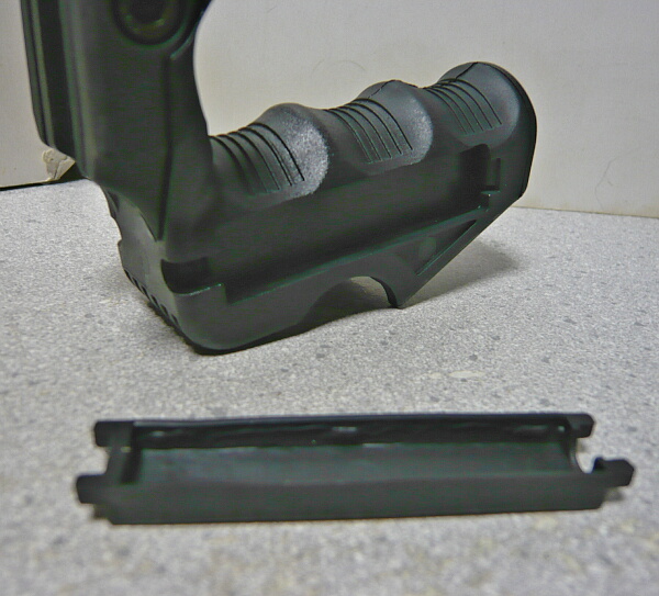 グリップは前後にもそこそこ太いので普通のフォアグリップとしても利用できます。ただし後ろ面のくぼんでいるところは親指を沿えるには下すぎるのでその上の角ばった部分を握る事になりやや握り心地が悪いです。