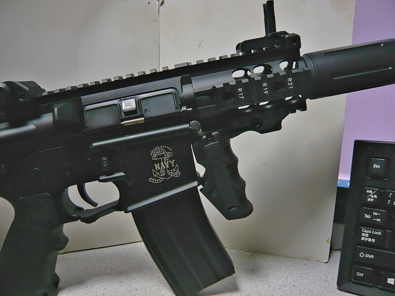 S&TのBABY M4は短くて良い(重いので軽便とか取り回しが良い、とは言えないのですが)ものの、十字断面のRASハンドガードが握りづらくてどうにも勘弁ならず、試しにマグウェルグリップを付けてみたものの違和感が増えただけでした。