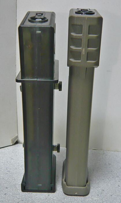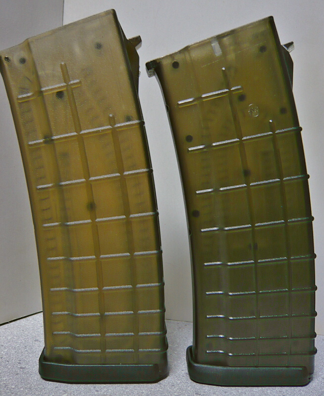 右のちょっと色が濃いものは以前買っていたマグプルPTSのAK P-MAGです。マグプルPTS製品は最近では色々あってあれだけいっぱいあったのにすっかり市場から消えてしまいました。なので今回のものはコピー品かと思ったら、よく見るとスプリングの通るルートが違います。